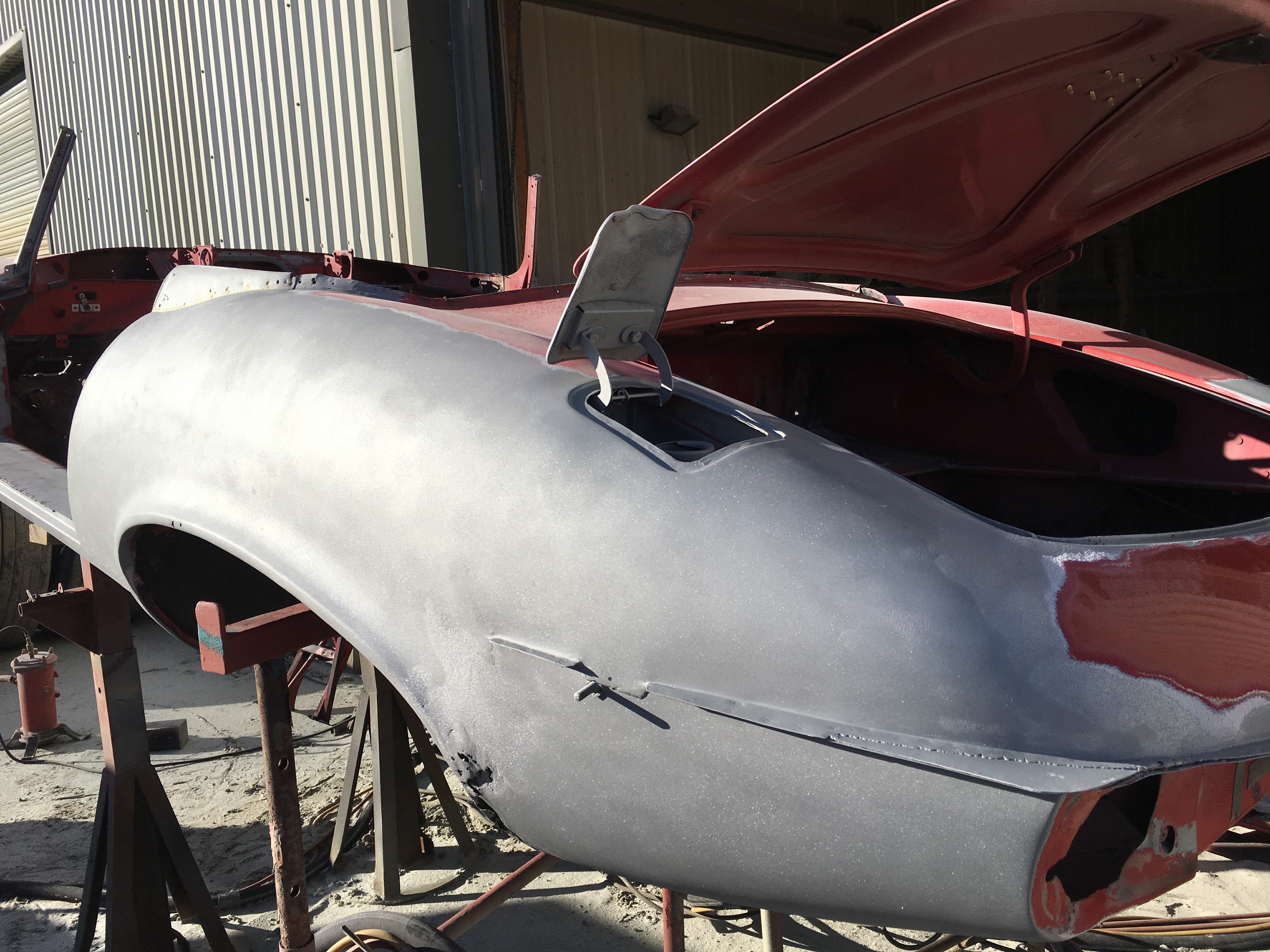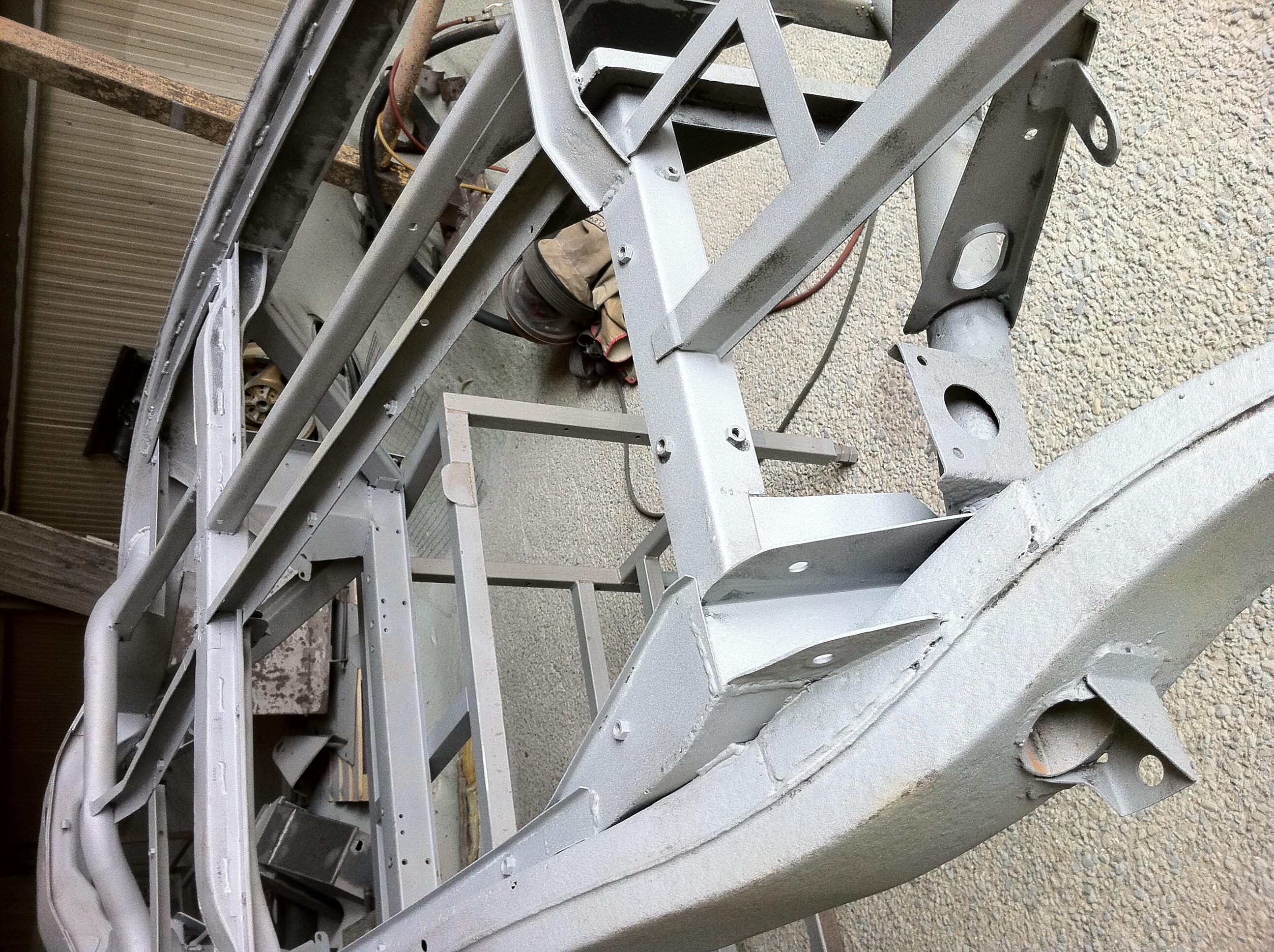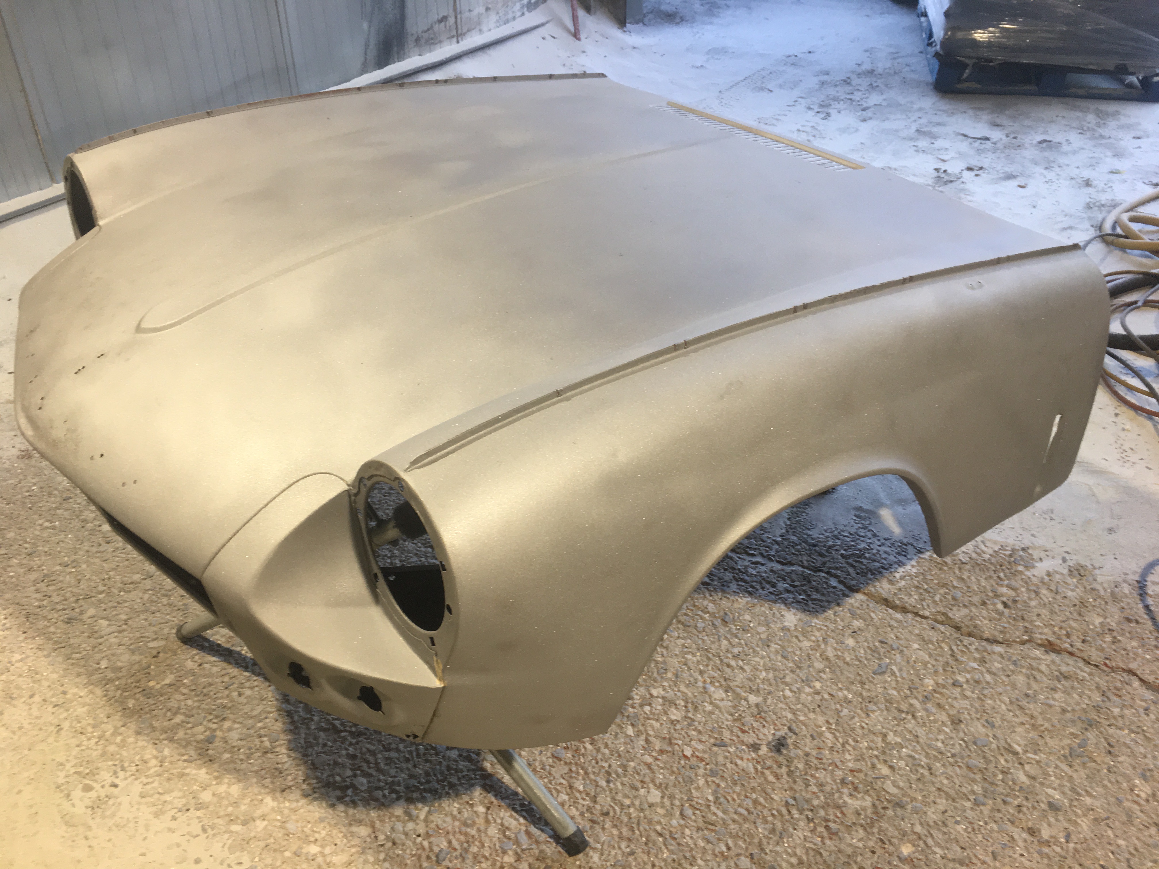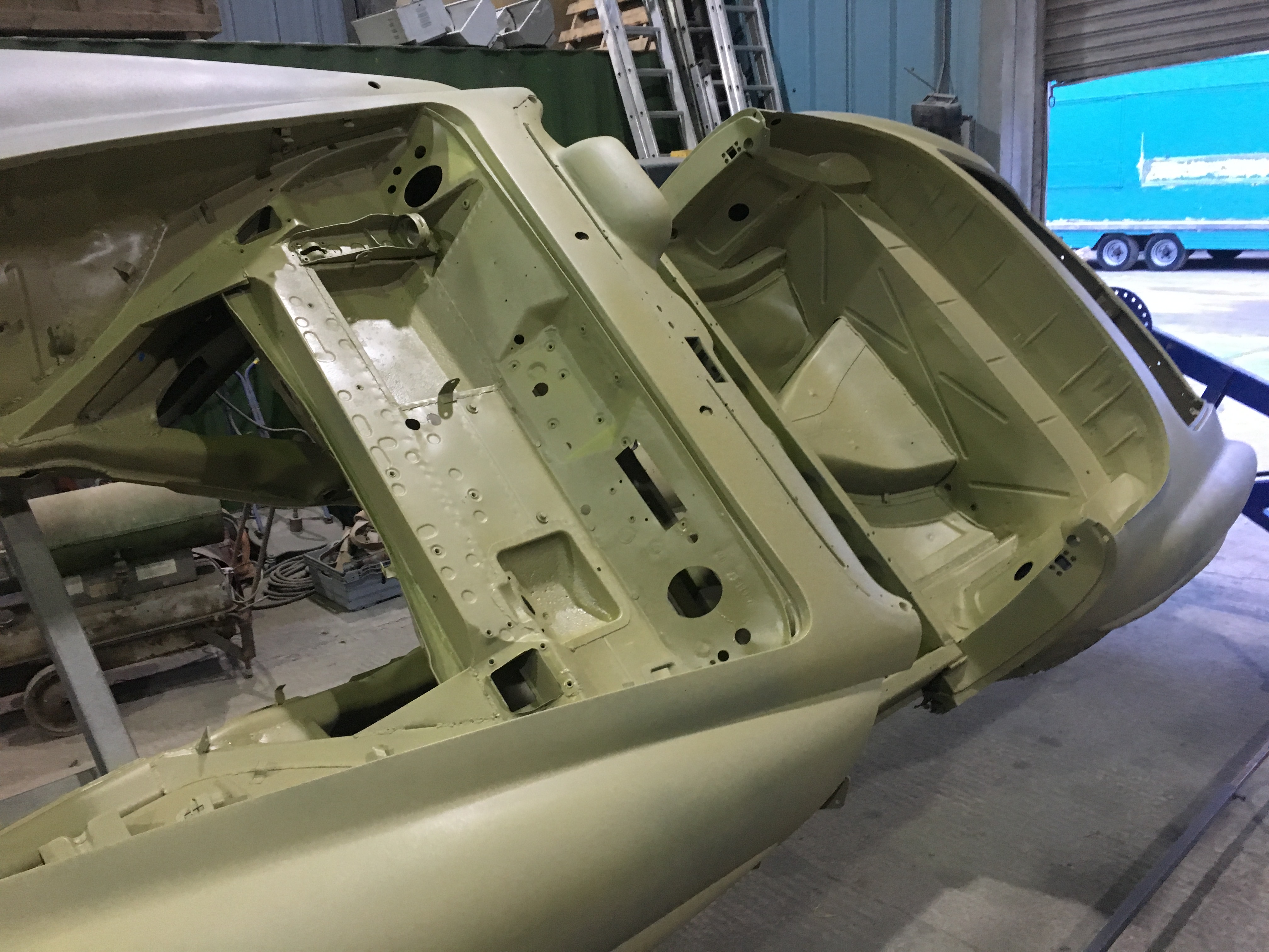 Individual areas of the bodywork were carefully repaired by our skilled team and each part of the car, from the chassis to the bonnet, was expertly blasted clean to leave the perfect surface for spraying and repainting.